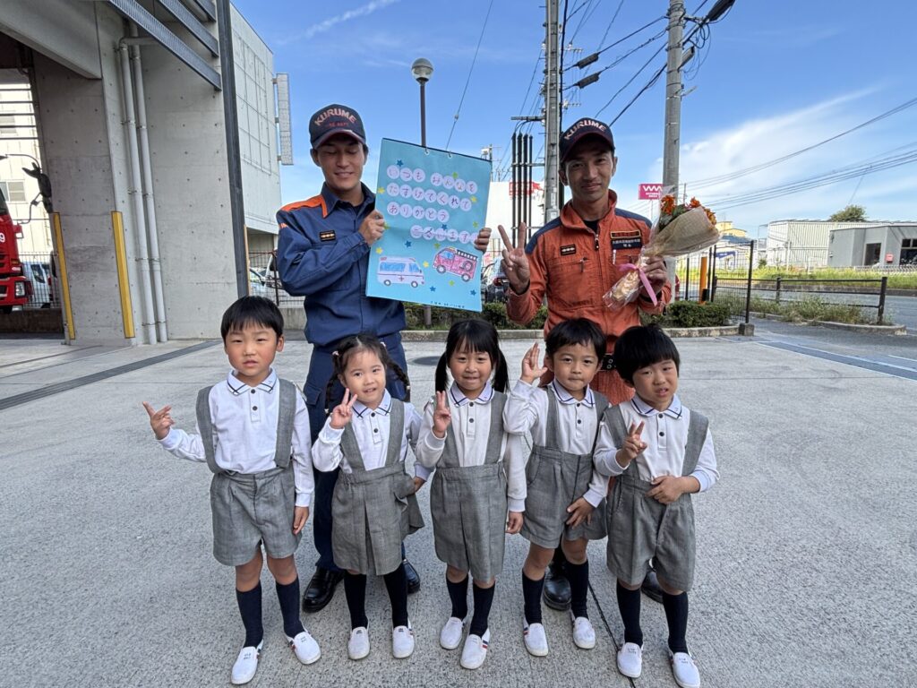 消防士さん達に、いつもありがとうございますの挨拶とプレゼントをお渡ししました!