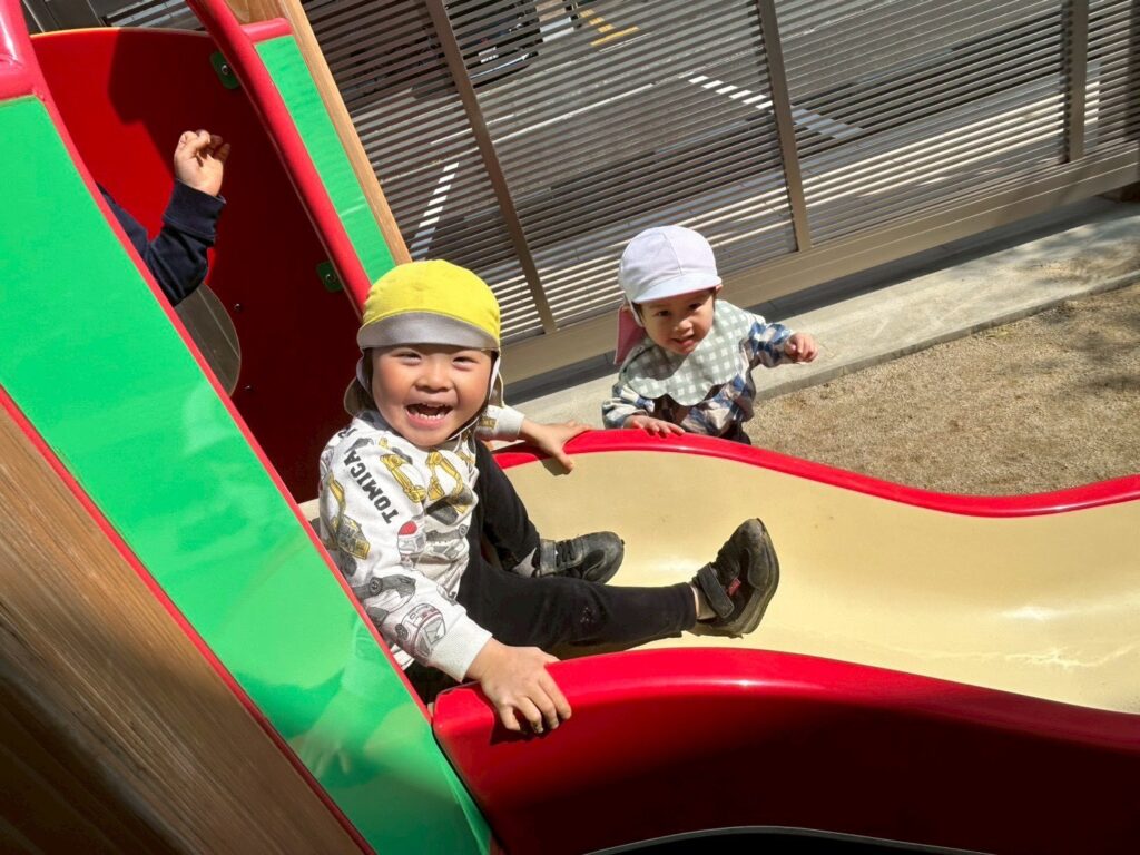 園庭にある滑り台で遊んだり
